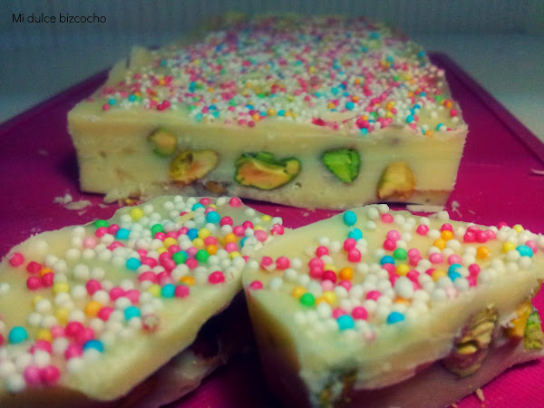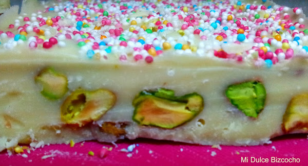 Cada vez está más cerca la navidad, prácticamente ya la tenemos encima, ya se nota en el ambiente, ¿verdad? Así que yo sigo con las recetas navideñas. Esta vez he preparado un riquísimo turrón de chocolate blanco con pistachos, que es otro de mis favoritos, junto al turrón de chocolate que hice el otro día.