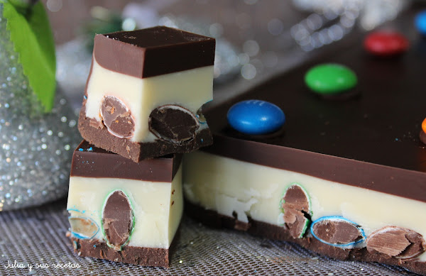 Hoy vamos a hacer un turrón de dos chocolates, blanco y negro relleno de M&M, ideal para los niños...y para lo no tan niños... porque a mi ¡¡me encanta!!
