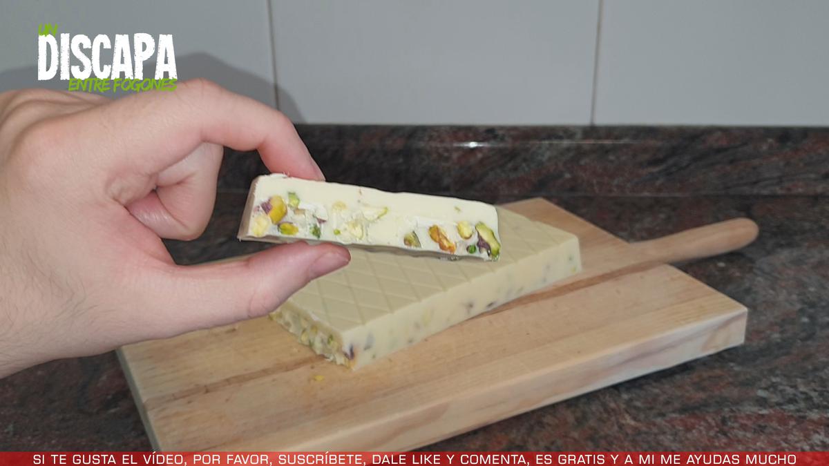 Muy buenas discapas y discapos hoy os traigo un riquísimo turrón de chocolate blanco con pistachos.