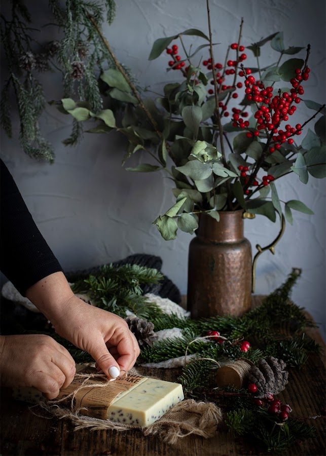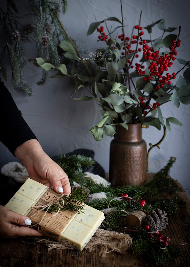 Desmoldamos después y podemos disfrutar de él. Si preparamos para regalar podemos envolverlo el algún papel bonito, y cerrar con una cuerda de yute y una ramita de pino, como he hecho yo. Sin duda es un bonito regalo.