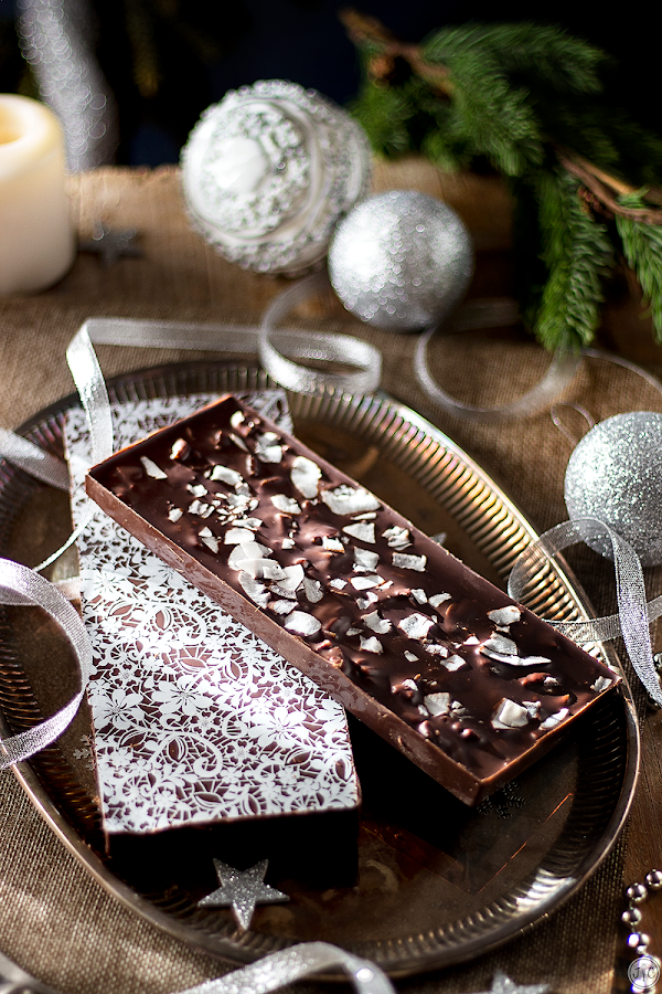 El turrón de chocolate no es mi favorito, pero sin duda es el más versátil. Puedes añadirle frutos secos, frutas deshidratadas, galletas, diferentes tipos de chocolate, pepitas, semillas, arroz inflado... y todo esto, combinarlo entre sí. Es una bomba de posibilidades con la que poder sorprender a vuestros invitados. Yo con esta receta me decanto por unas lascas de coco sin azúcar y por nueces pecanas.