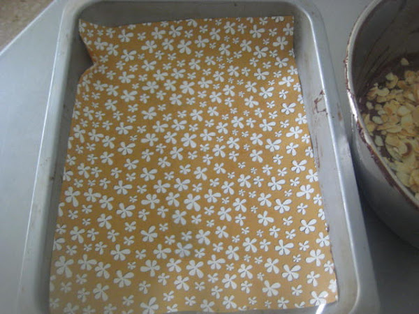 Preparación: En primer lugar es preciso tostar las almendras laminadas, también pueden ser enteras, y dejar que se enfríen totalmente para que queden crujientes. Lo mejor es hacerlo de un día para otro y con mucho cuidado, en la sartén o en el horno para que no se quemen. Por otra parte ,en un cazo al fuego o en un cazo eléctrico poner las dos clases de coberturas y el praliné. Fundir el conjunto a fuego suave para evitar que se queme. Una vez fundido retirar del fuego y dejar que baje un poco la temperatura. Entonces agregar las almendras laminadas tostadas. Mezclar bien y poner en un molde encamisado (forrado con cobertura negra o con leche)o bien en un molde con un transfer para que la parte superior quede decorada sin necesidad de encamisar moldes. Una vez colocado el turrón, llevarlo inmediatamente al frío para que la manteca de cacao coloreada del transfer se transfiera al chocolate. Conservar en lugar fresco y seco, bien tapado y con el transfer para que no pierda brillo. A la hora de poner la mezcla en el molde, la mezcla no deberá estar muy caliente, ya que puede deshacer el encamisado o "comerse" el transfer y ponerla inmediatamente en frío