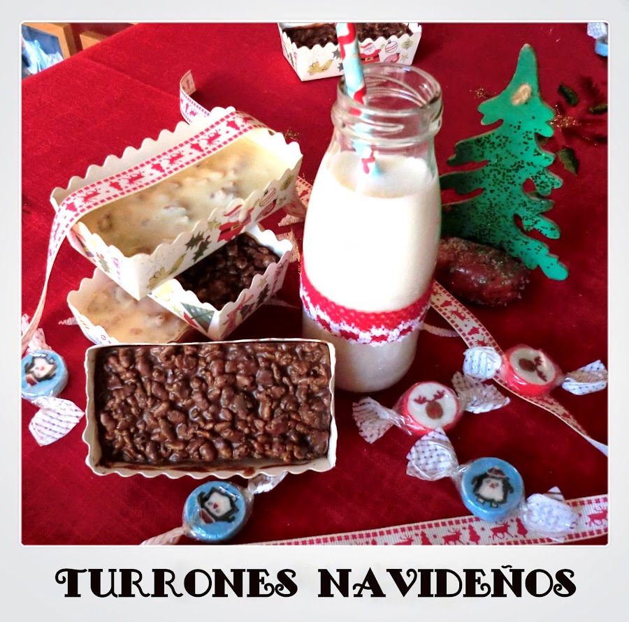 Si no tenéis moldes de turrón o de silicona es tan fácil como cortar un cartón de leche por la mitad verticalmente y forrarlo con papel de horno, así lo hice yo el año pasado antes de tener estos moldes tan chulos que me he comprado para este año.
