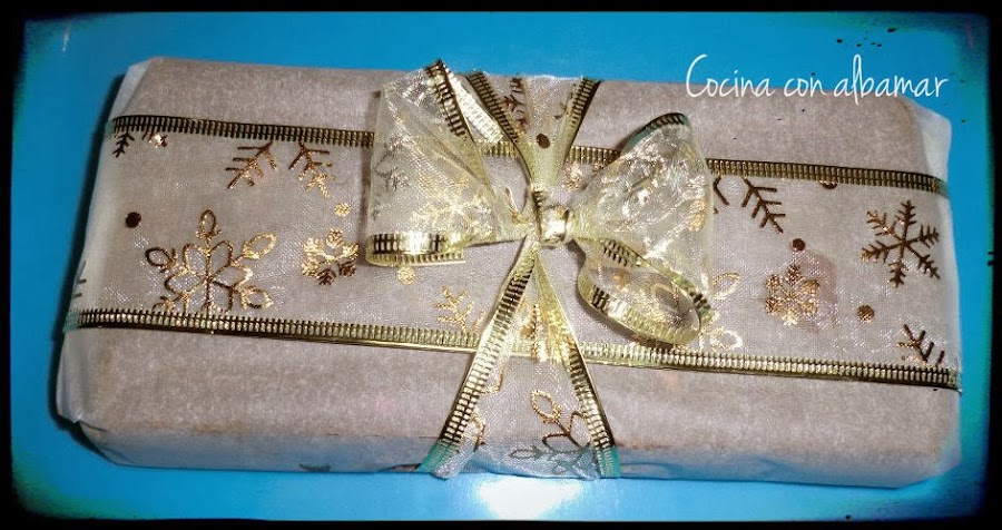 y este fue el turrón que hice el año pasado para regalar ya envuelto.