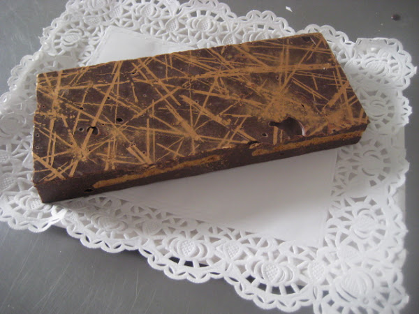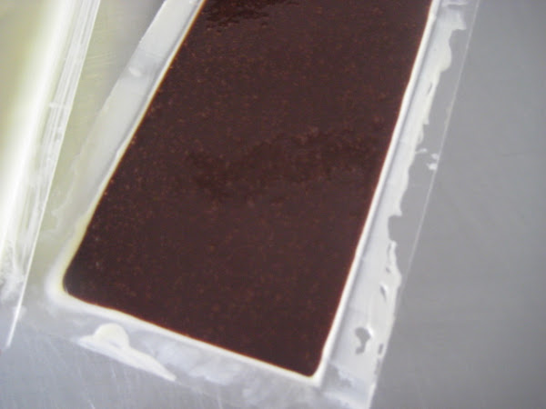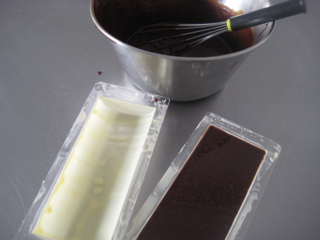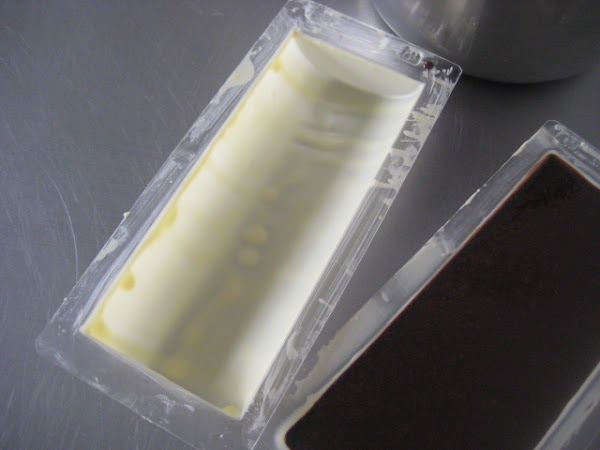 Preparación: Trocear las coberturas y ponerlas en un recipiente junto con la crema elegida. Fundir en el microondas con cuidado, es mejor ir haciéndolo poco a poco para que no se nos queme. Una vez fundido trabajar bien con varillas para que la mezcla quede bien homogeneizada y agregar la mezcla de especias. Verter en un molde de turrón encamisado (forrado con cobertura negra) o bien poner en un molde cualquiera un transfer para chocolate con motivos navideños, verter la mitad, de la mezcla y luego colocar las galletas con cuidado. Cubrir con el resto de la mezcla y dejar reposar en la nevera al menos 24 horas. A la hora de poner la mezcla en el molde no deberá estar muy caliente, ya que puede deshacer el encamisado o "comerse" el transfer.