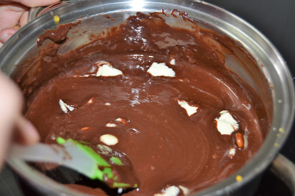Dejamos que se enfríe el chocolate, tambien lo puedes meter en la nevera para que enfríe antes.