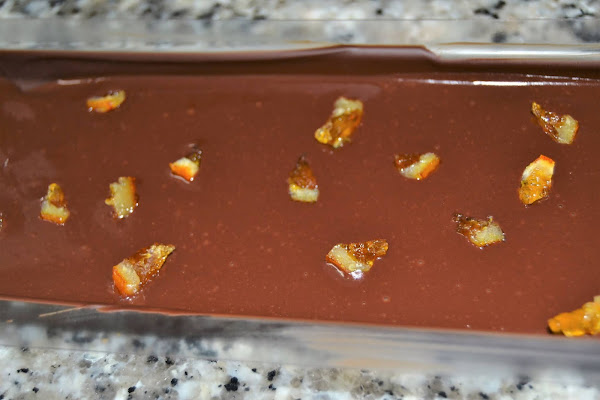 Se trata de un turrón de chocolate negro con naranja confitada que hago en casa y cointreau, ya sabéis que me gusta mucho este licor en combinación con el chocolate.