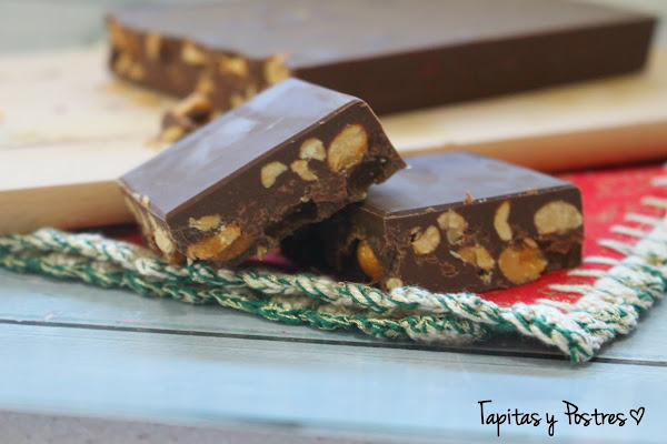 Y como no podía ser de otra manera, tiene que haber turrón. En esta ocasión un turrón de chocolate con cacahuetes fritos con miel. Idéntico al que venden en un famoso supermercado, pero sin aditivo extraños ni conservantes.