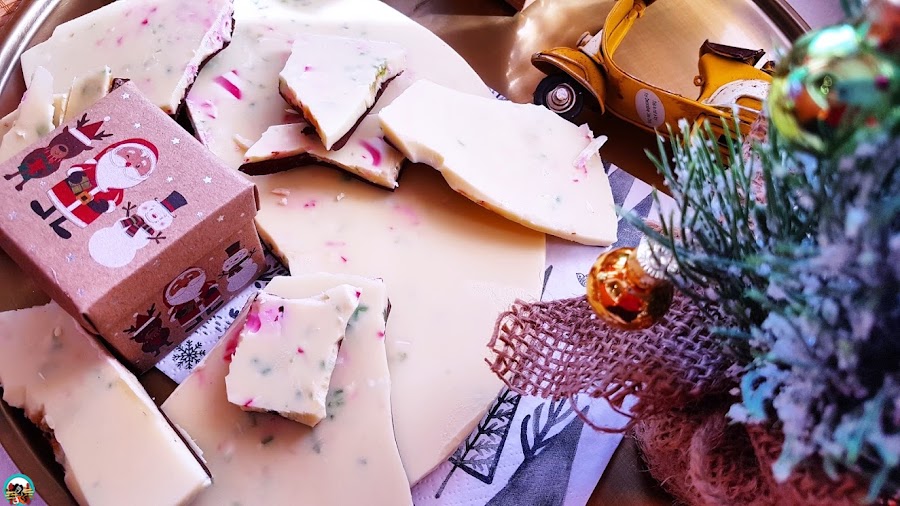 turrón de chocolate blanco y arroz inflado de frutas del bosque