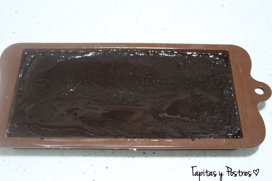 Vertemos sobre el molde con el chocolate blanco que teníamos reservado y dejamos reposar hasta que solidifique.