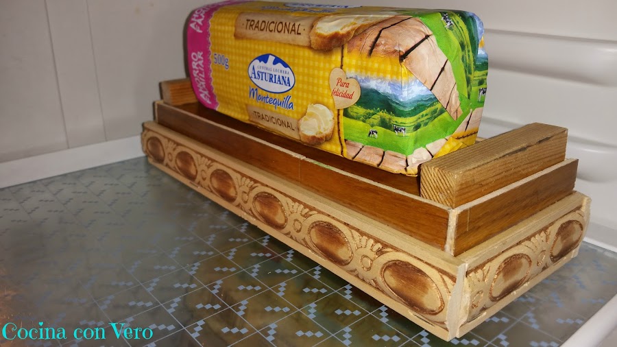 Finalmente mezclamos con la espátula e introducimos la mezcla en el molde, envolvemos bien con el mismo papel vegetal y tapamos por encima con la tapa del mismo molde de madera y si no lo tenemos vale con otra cosa que proporcione peso.