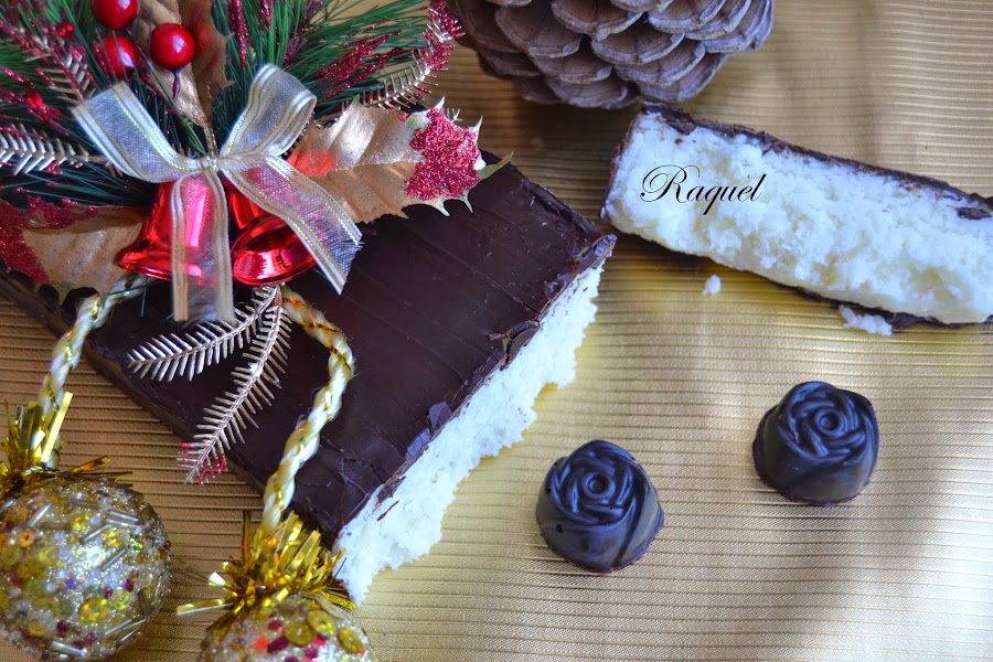 Bueno espero que os guste, a nosotros en casa nos ha encantado y como no he calculado muy bien el recipiente para hacer el turrón lo hice algo mas pequeño y me ha sobrado un poco de coco y he hecho también unos bombones, que mejor que una receta dulce y con buen sabor de boca para despedirme con la ultima receta del año.