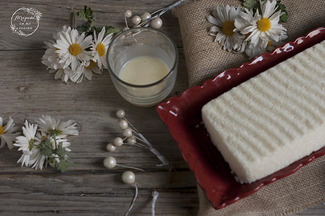 En Thermomix: Poner los ingredientes en la cubeta y programar 2 minutos a 37º, velocidad 2. Vertemos en un molde rectangular de silicona, y con la ayuda de una cuchara aplanamos la superficie. Tapamos con papel vegetal y ponemos peso encima (un brick de leche) y dejamos durante un día entero. Después desmoldamos con cuidado.