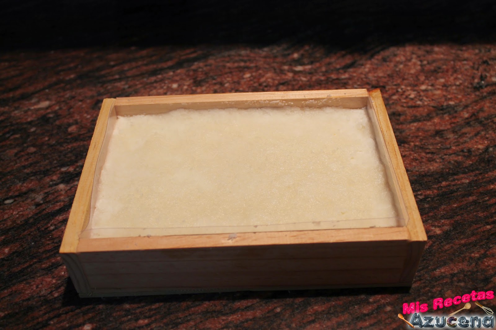 Una vez tengamos la pasta lista la introduciremos en el molde que previamente lo habremos forrado con acetato o papel vegetal.