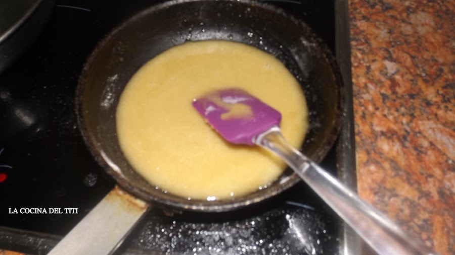 4º Retiramos del fuego e incorporamos la clara poco a poco hasta que se mezcle todo correctamente.