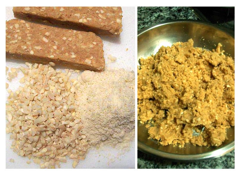 En la foto de la izquierda podemos apreciar los dos tipos de harina de almendra, yo ya la compro molida, pero si no la encontráis la podéis triturar en casa.