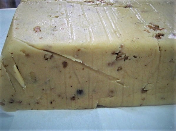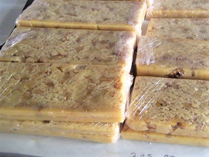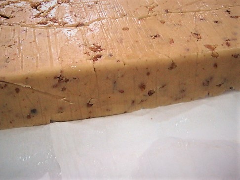 Preparación: Poner en el perol de la batidora todos los ingredientes,menos las nueces, con la pala mezcladora y darle a velocidad media. Dejar que se amase bien y seguidamente añadir las nueces troceadas y mezclar a mano para no romper las nueces. Seguidamente poner en cajas (2 ó 3) o en un molde más grande, forrado con papel de horno, poner peso encima y dejar así dos o tres días para que se prense bien. Luego ya se puede comer. Puede dejarse así o si se quiere dorarse en el horno previamente pincelado con huevo batido y sólo con el grill para que se dore por arriba.Yo lo dejo natural. Este proceso para esta cantidad se puede hacer totalmente a mano. Hay muchas recetas para este turrón, pero a mí esta me da muy buenos resultados y es muy sencilla de elaborar