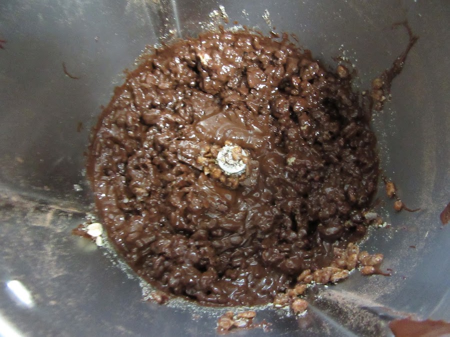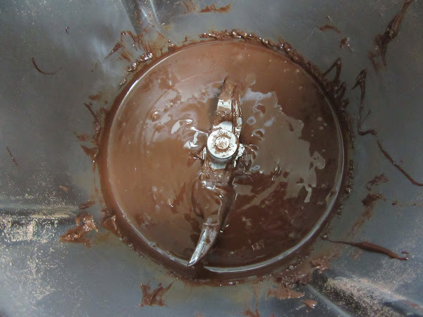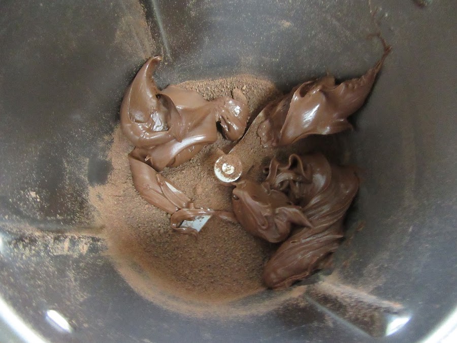 2- Moler el chocolate con golpes de turbo. Añadir la nutela, calentar, 4 min. 50º, vel. 1.