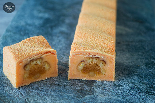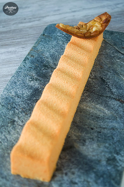 Lo que se me ha ocurrido para este turrón es hacer un panellet alargado que después he introducido dentro del turrón y lo he cubierto con una ganache de boniato.