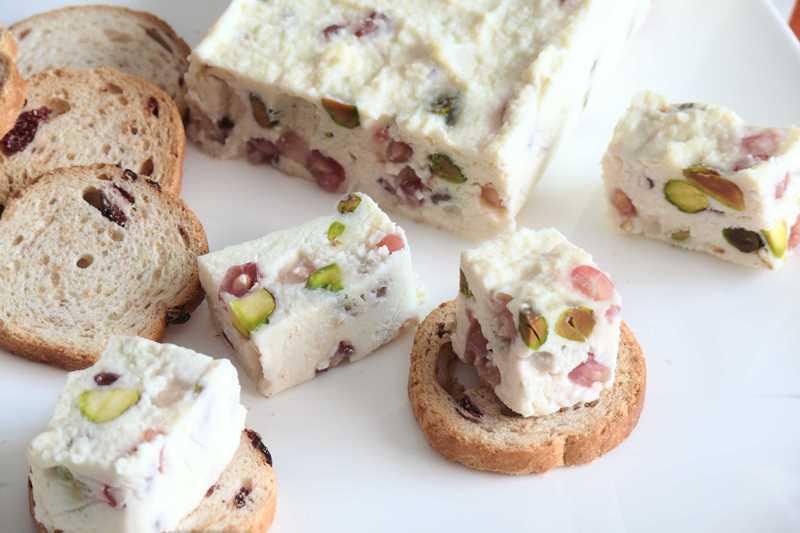 Turrón de queso camembert pistachos y frutos rojos