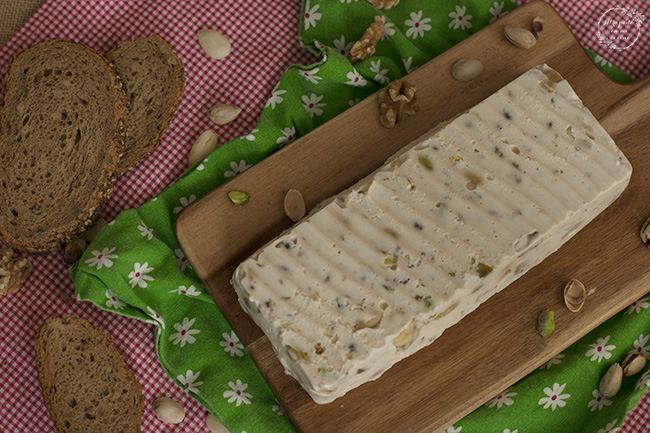 Si lo preparamos en la Thermomix introducimos en el vaso la nata (crema de leche) y el queso y programamos 7 minutos, temperatura 90º y velocidad 1. Añadimos el queso crema y la sal y programamos 30 segundos más a velocidad 5. Bajamos con la espátula todos los ingredientes que se hayan quedado pegados en las paredes del vaso y añadimos los frutos secos. Programamos 20 segundos, giro a la izquierda y velocidad 2. Si queréis un poco triturados los frutos secos programamos 10 segundos, velocidad 2, sin giro a la izquierda.