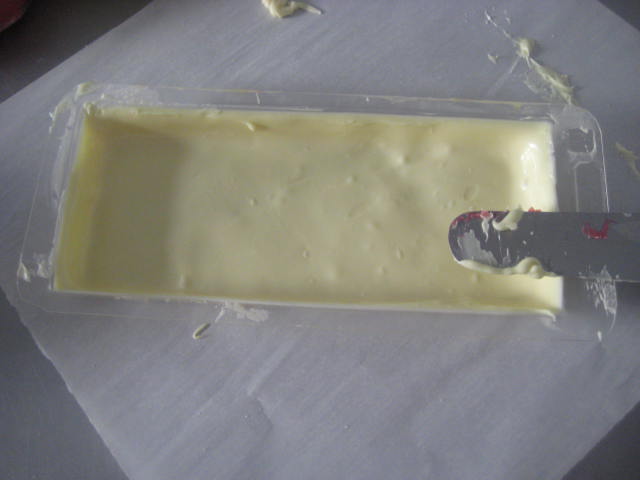 Preparación: Fundir la cobertura negra para encamisar el molde; repartir por todo el molde una capa fina, como hemos aprendido a hacerlo y dejar fraguar en la nevera.