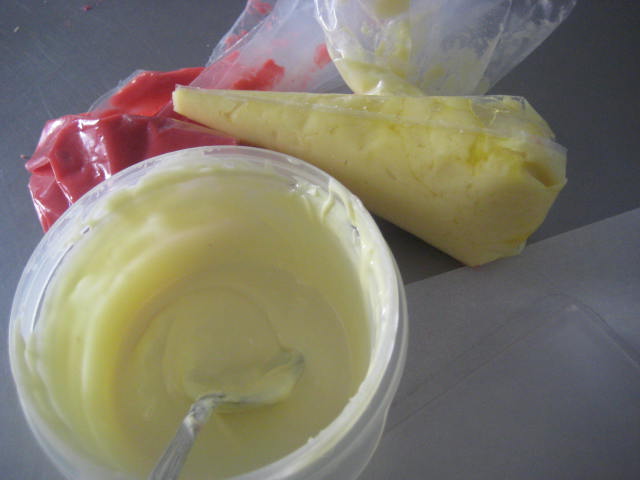 Para hacer la crema de queso hacemos lo siguiente: en un cazo fundir suavemente la cobertura blanca con el queso y la grasa elegida, de forma que se haga una crema homogénea. Si no es así pasar unos minutos a la batidora con varillas. Una vez obtenida la crema de queso ponerla en manga pastelera.