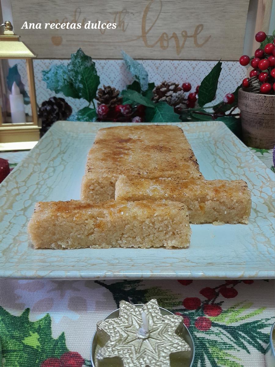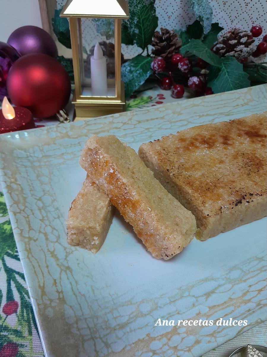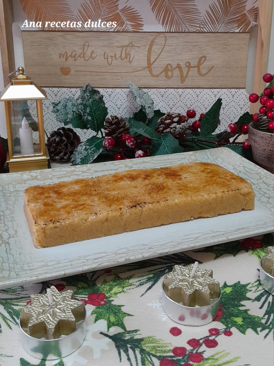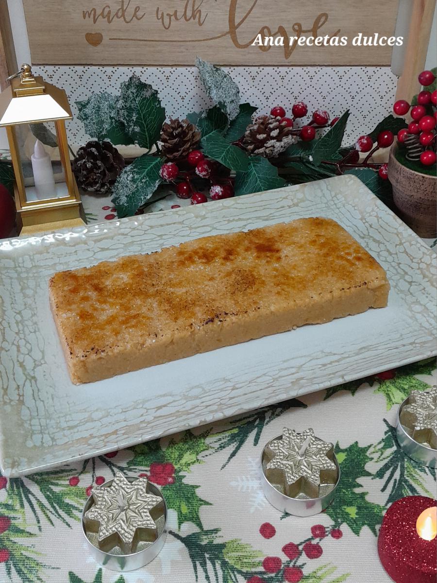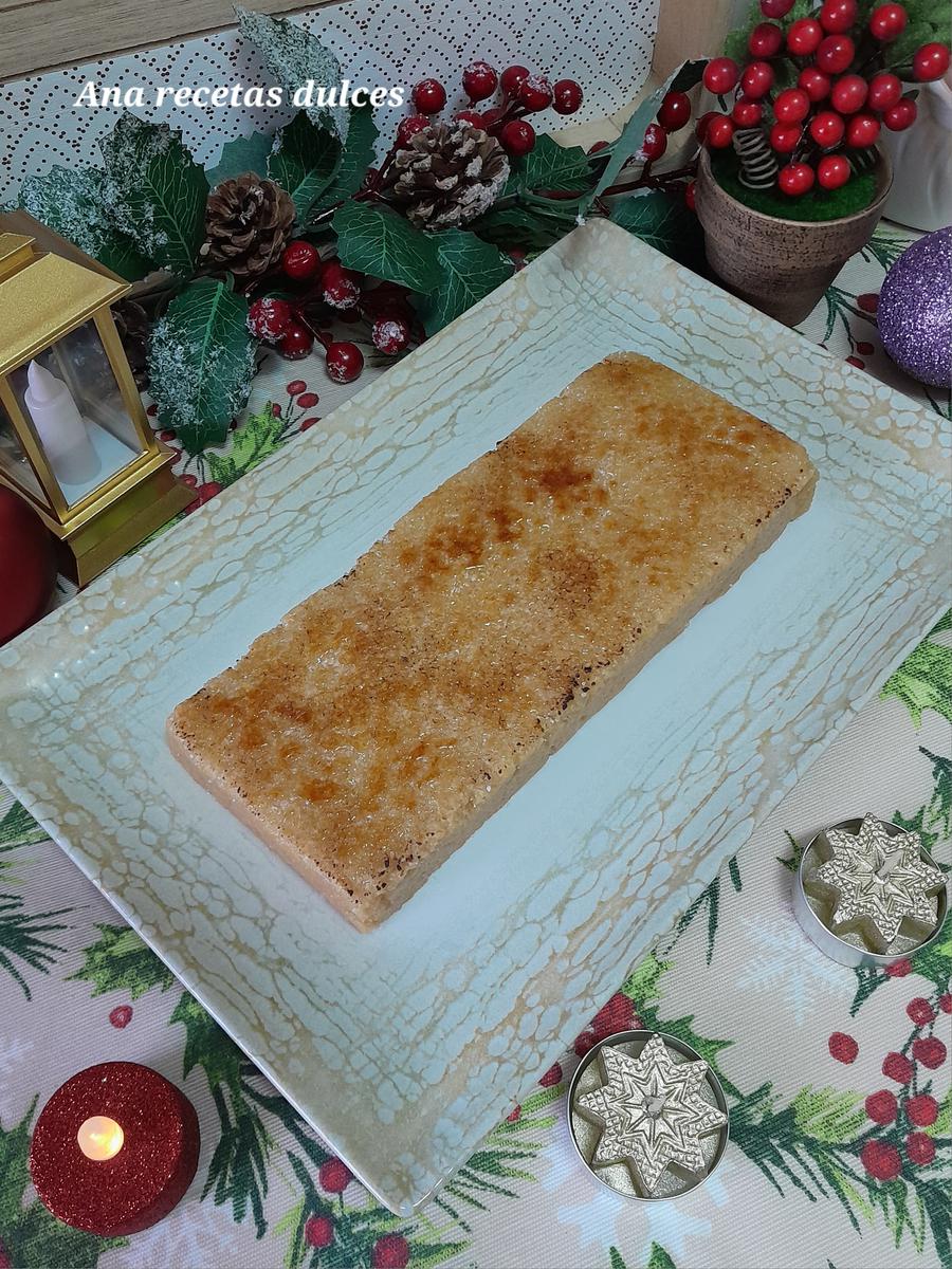Al día siguiente lo desmoldamos, echamos abundante azúcar por encima del turrón y con un soplete de cocina quemamos el azúcar.