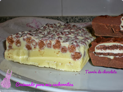 Del blog de Chus, "Para estar por casa", me he traído Turrón de Chocolate Blanco y Bayleys y Turrón Chocolate con Almendras, dos mejor que uno!!