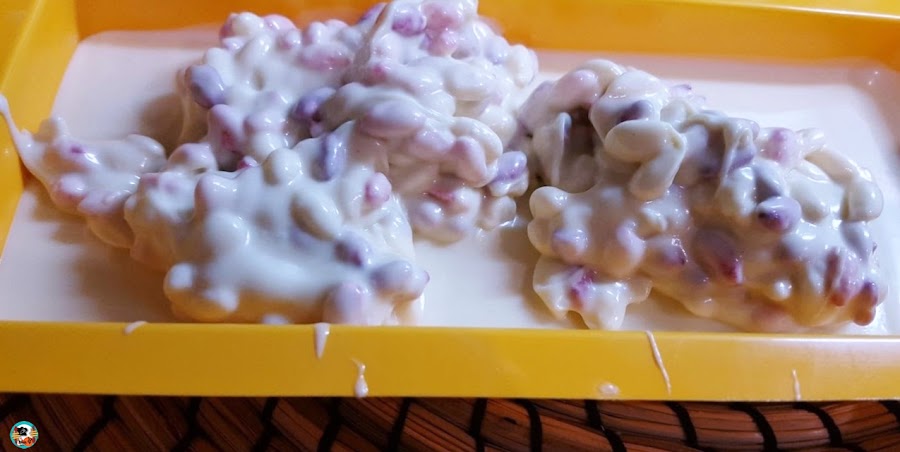 2.- En un molde rectangular o para hacer turrones vertemos el chocolate blanco y lo extendemos bien. Mezclamos el arroz inflado con frutas del bosque con el resto del chocolate y lo extendemos dentro del molde. Lo dejamos secar en un lugar seco y fresco 6 o 7 horas.