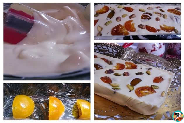 Consejo: puedes hacer también turrón con fruta escarchada..., solo tienes que cambiar el arroz blanco por la fruta escarchada y añadirle 600 gr blanco, 100 gr de pistados, 200 gr de mandarinas confitadas y 2 naranjas confitadas. Si utilizas un molde rectangular de hacer bizcochos, cubre el fondo con papel flim transparente y sigue el resto de la instrucciones como las he explicado en la receta. Si vives en un lugar de mucho calor, lo mejor es que guardes el turrón en un táper en la nevera y lo sacas 20 minutos antes de servirlo. Si lo dejas fuera de la nevera se queda muy pegajoso. Para que se conserve bien, lo puedes guardar en un táper en un lugar fresco y seco.