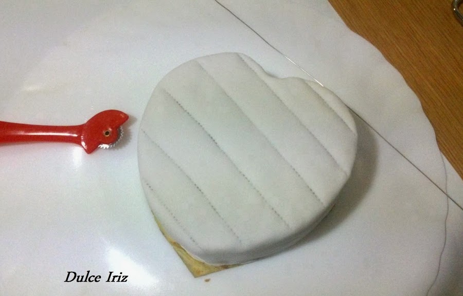 Si os habéis equivocado haciendo las rallas y no se ha apretado mucho se pueden desdibujar pasando el alisador de fondant suavemente hasta quitarlas y luego volver a empezar, siempre con sumo cuidado ya que el fondant es delicado y en menos de nada podemos rasgarlo y estropearía nuestra creación y tendríamos que buscar algún arreglillo.