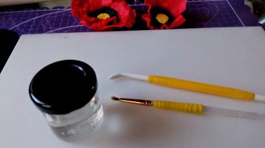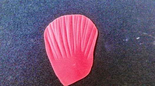 Pon el pétalo sobre la almoadilla y con la esteca que te hablé más arriba haz líneas como vez en la foto.. si no tienes esa esteca, con un cuchillo filo romo..