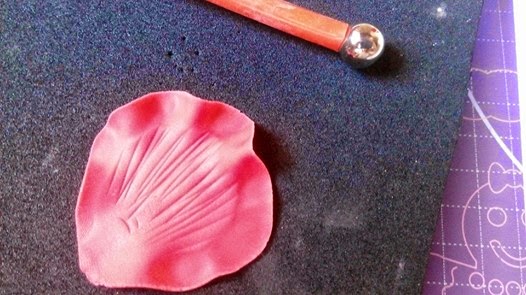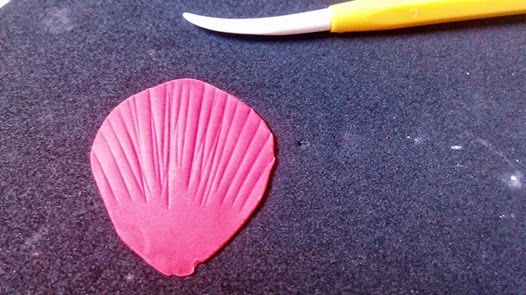 Luego con una esteca de bolillo pásalo en los bordes para crear los pliegues del pétalo.. como en la foto.