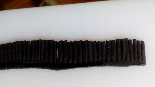 Hacer un rollito de fondant negro y estirarlo a lo largo. Disculpen la foto.