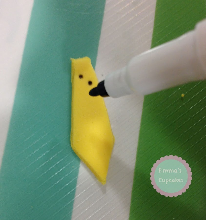 Una vez recortado, podemos hacerle la estampación que nos guste con un rotulador comestible del color que nos parezca. Yo en este caso, puntitos, aunque también podéis hacer rallas, cuadros... lo que queráis.
