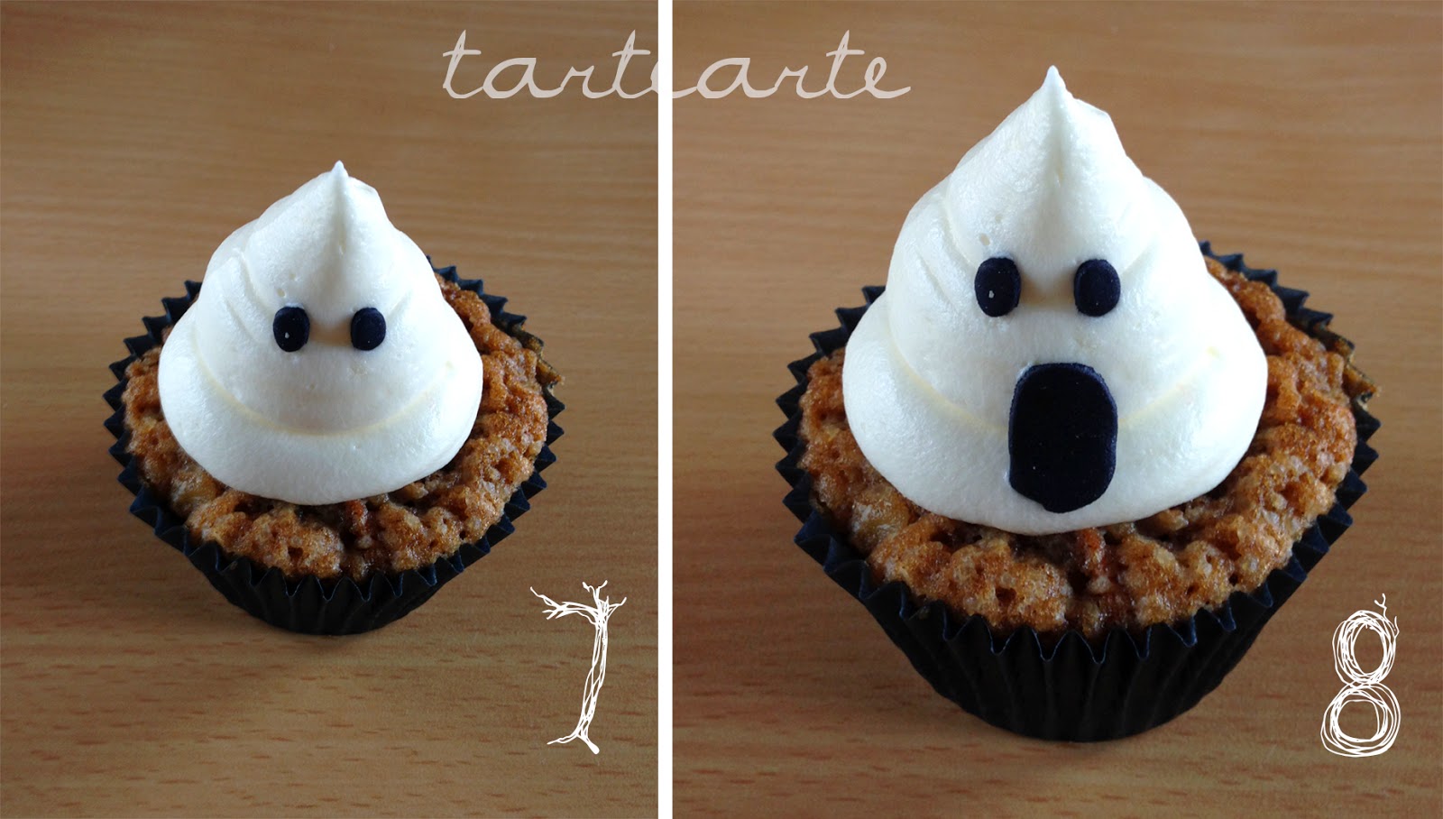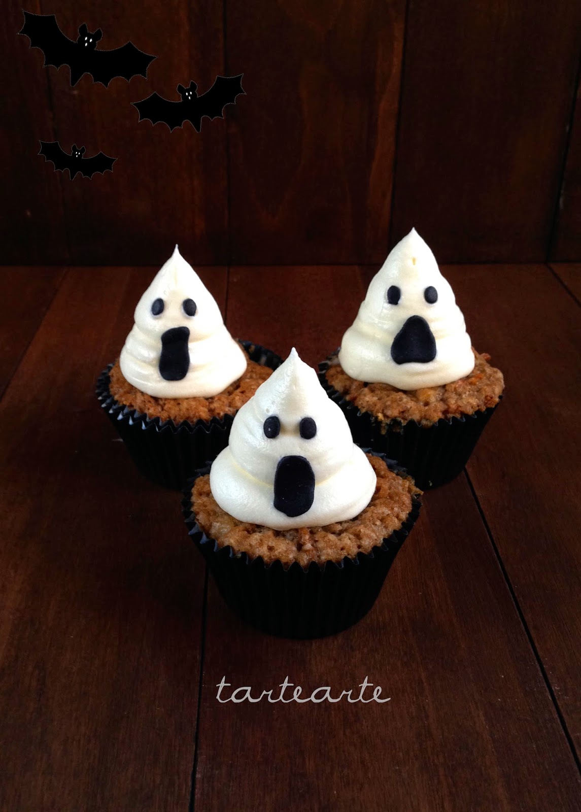 Yo hice estos muffins de zanahoria que prepare el año pasado, están deliciosos con una riquísima crema de queso que va a ser nuestros fantasmitas.