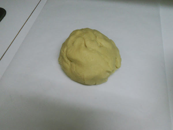 1º " Mezclamos los ingredientes comenzando por la mantequilla y el huevo, añadimos el azúcar, y seguidamente la harina poco a poco para que quede bien mezclado hasta conseguir una pasta homogénea.
