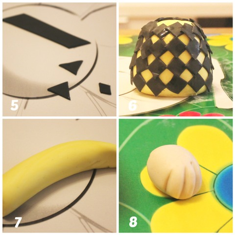 6- Los pegamos en la base, pegándolos con un poco de agua.