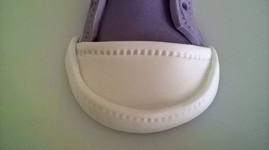 Ahora corta la tira que va por detrás de la zapatilla y con la herramienta indicada en la foto tienes que hacer las rayitas como de arrugado...