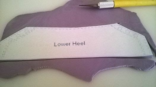 No te olvides de cortar una tirita del color de la zapatilla, marcar costura y pegarla en el contrafuerte.