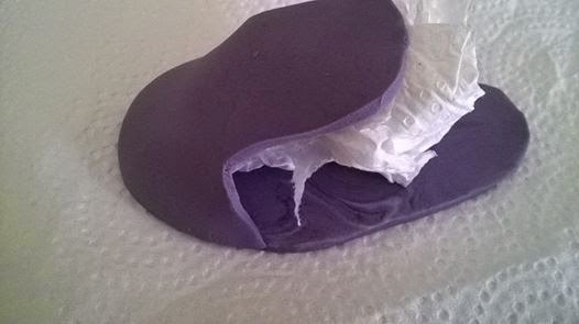 Pega la lengueta a la parte de adelante de tu zapatilla y pon papel de servilleta o de cocina, arrugado, para sostenerla.