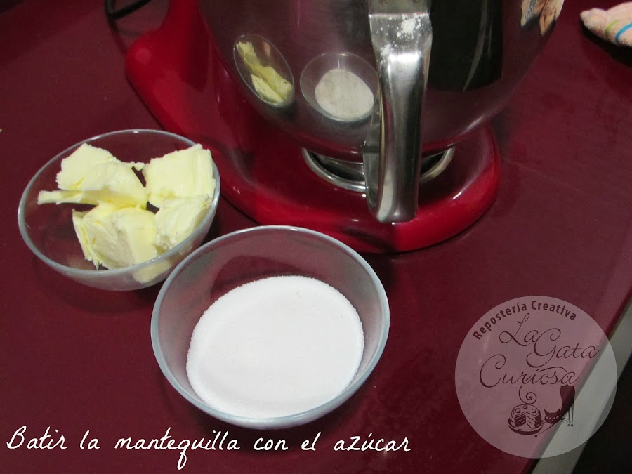 Lo primero que tenemos que hacer es preparar todos los ingredientes para que estén a temperatura ambiente (la mantequilla debemos tenerla fuera al menos unas horas).