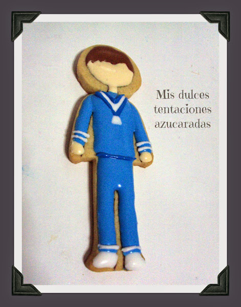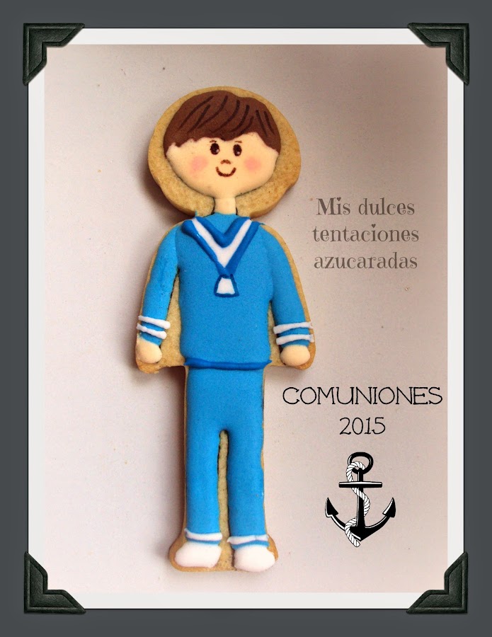 Esta es la galleta que vamos a decorar hoy,como siempre os digo se puede personalizar acorde al traje en cuestión,es decir,si va de marinero pues se pone el traje en color blanco y listo.Le podéis añadir una cruz o lo que querais,siempre dependiendo del atuendo del niño en cuestión.