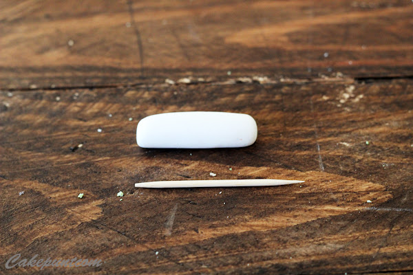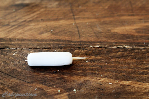 Cogemos un poco de fondant blanco y hacemos un cilindro con el un poco más pequeño que nuestro palillo