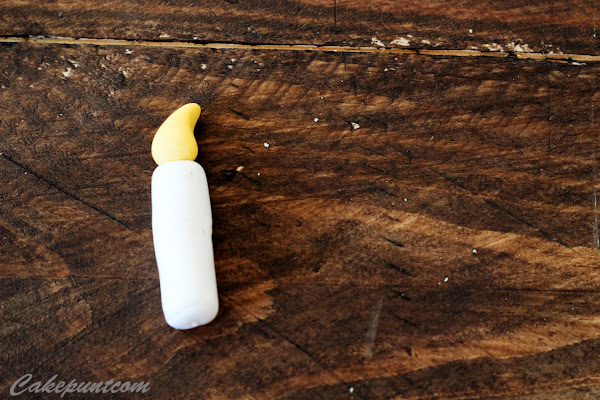 Con un poquito de fondant amarillo haremos una bola y seguidamente un cono que acabe en punta.