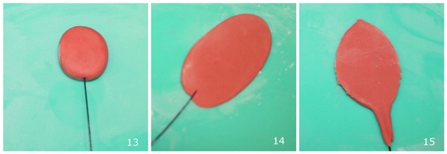 Estiramos un poco (que quede más bien ancho) un poco de pasta de color rojo.