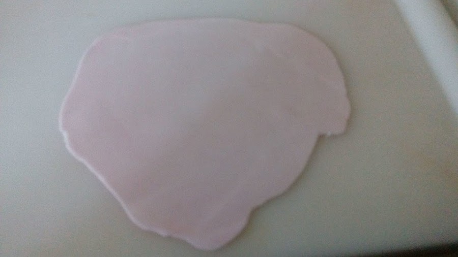 Para esto lo que hice fue estirar el fondant y una vez que estuvo estirado, lo pinté con un pincel y colorante en polvo. También podrías haber agregado un poco más de colorante en gel, haber amasado y estirado. Pero ahí te hubiera quedado un color parejo. Yo quería un color veteado.