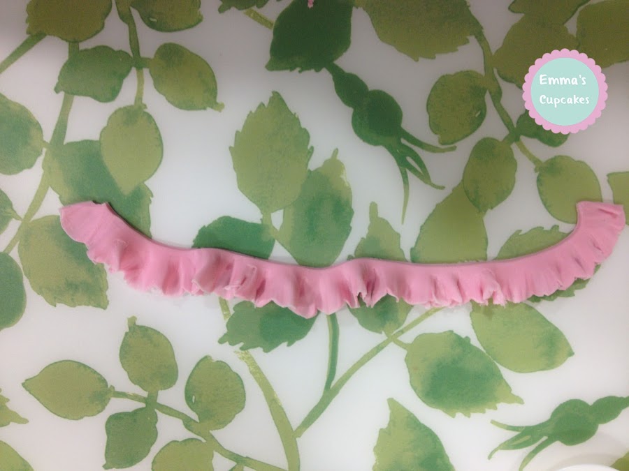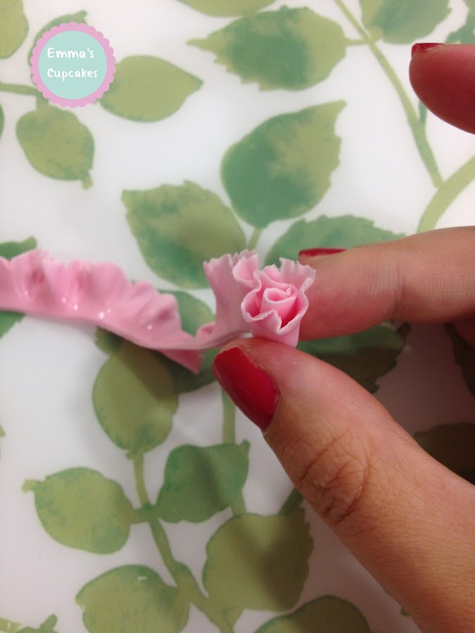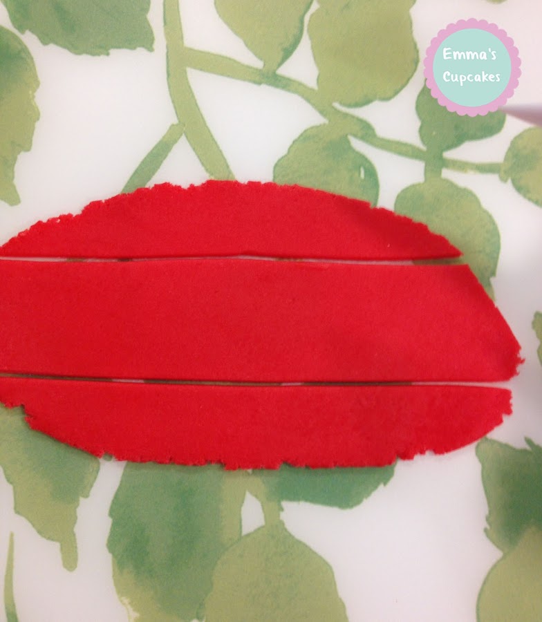 Enrollamos la tira alargada y por debajo eliminamos el exceso de fondant.