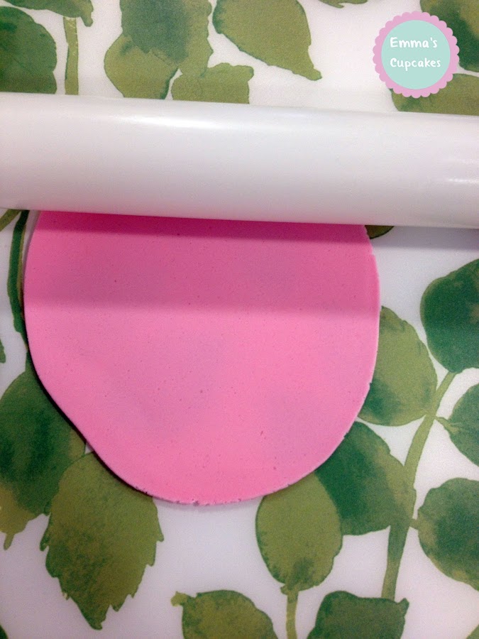 Para el segundo tipo de rosa he escogido el color rosa, pero ya sabéis que podéis escoger el color que queráis. Con la bolita de fondant rosa la alisamos con el rodillo.